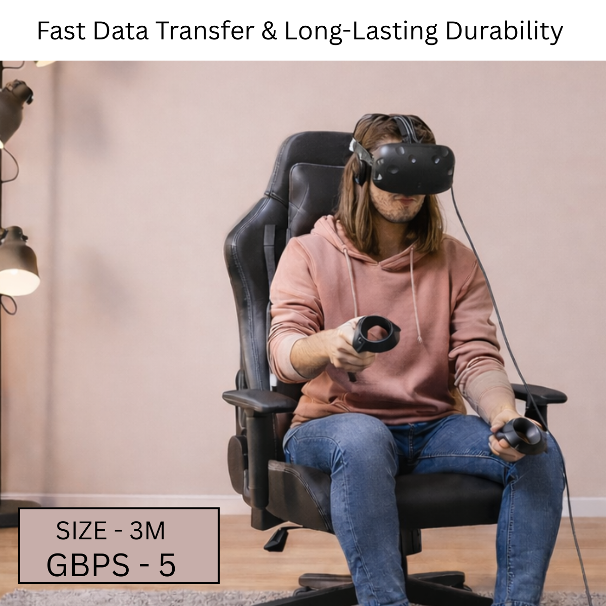This premium USB-C to USB-C cable supports fast data syncing and charging at the same time, making it perfect for long VR sessions. The extended 3-meter length gives you more freedom to move comfortably while playing games, watching movies, or using VR apps.